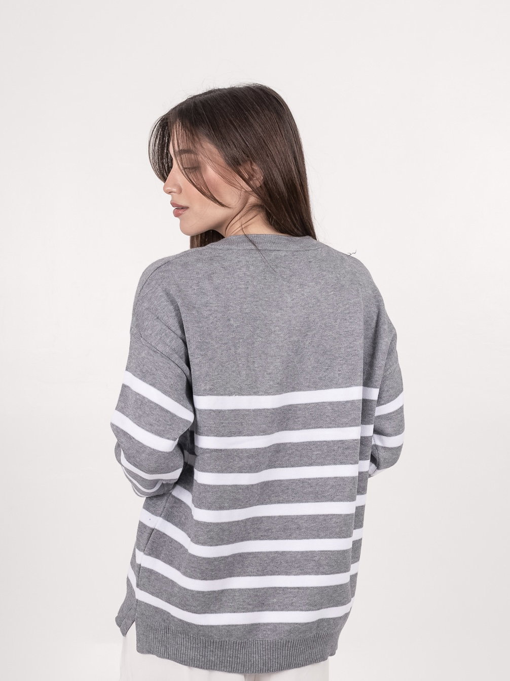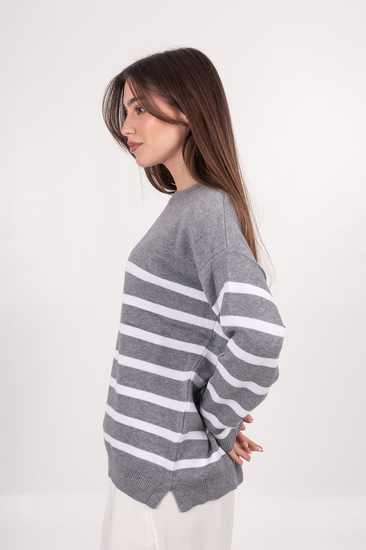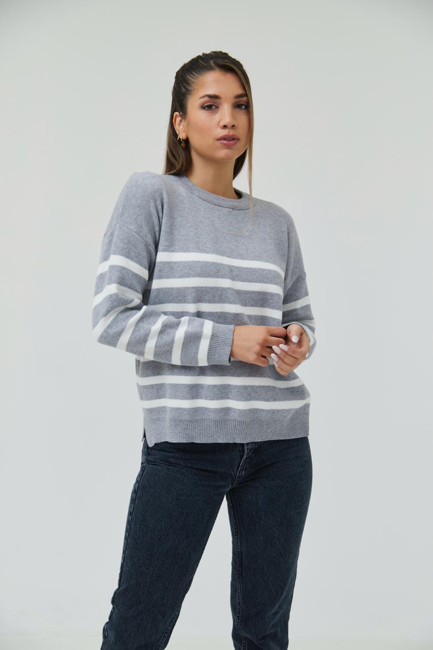 Sweater rayado oversize doble hilo bremer con tajo. Prenda casual, cómoda y muy buscada.