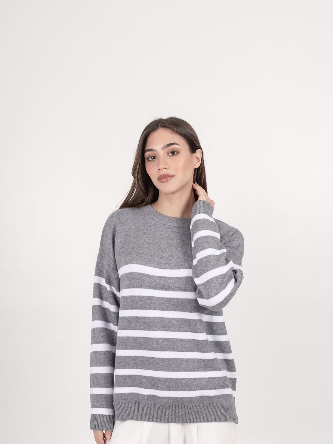 Sweater rayado oversize de alta rotación, un modelo que combina lo clásico con el atractivo visual de las rayas horizontales. Es una prenda que llamar la atención en vidriera sin dejar de ser versátil y fácil de vender.
