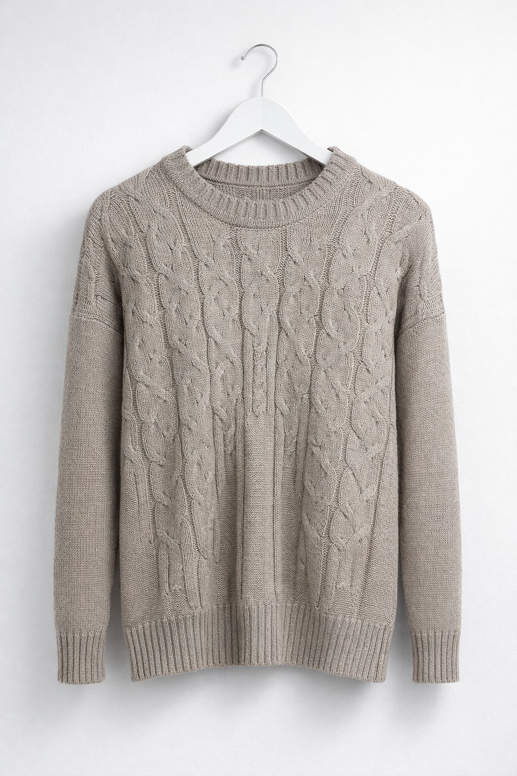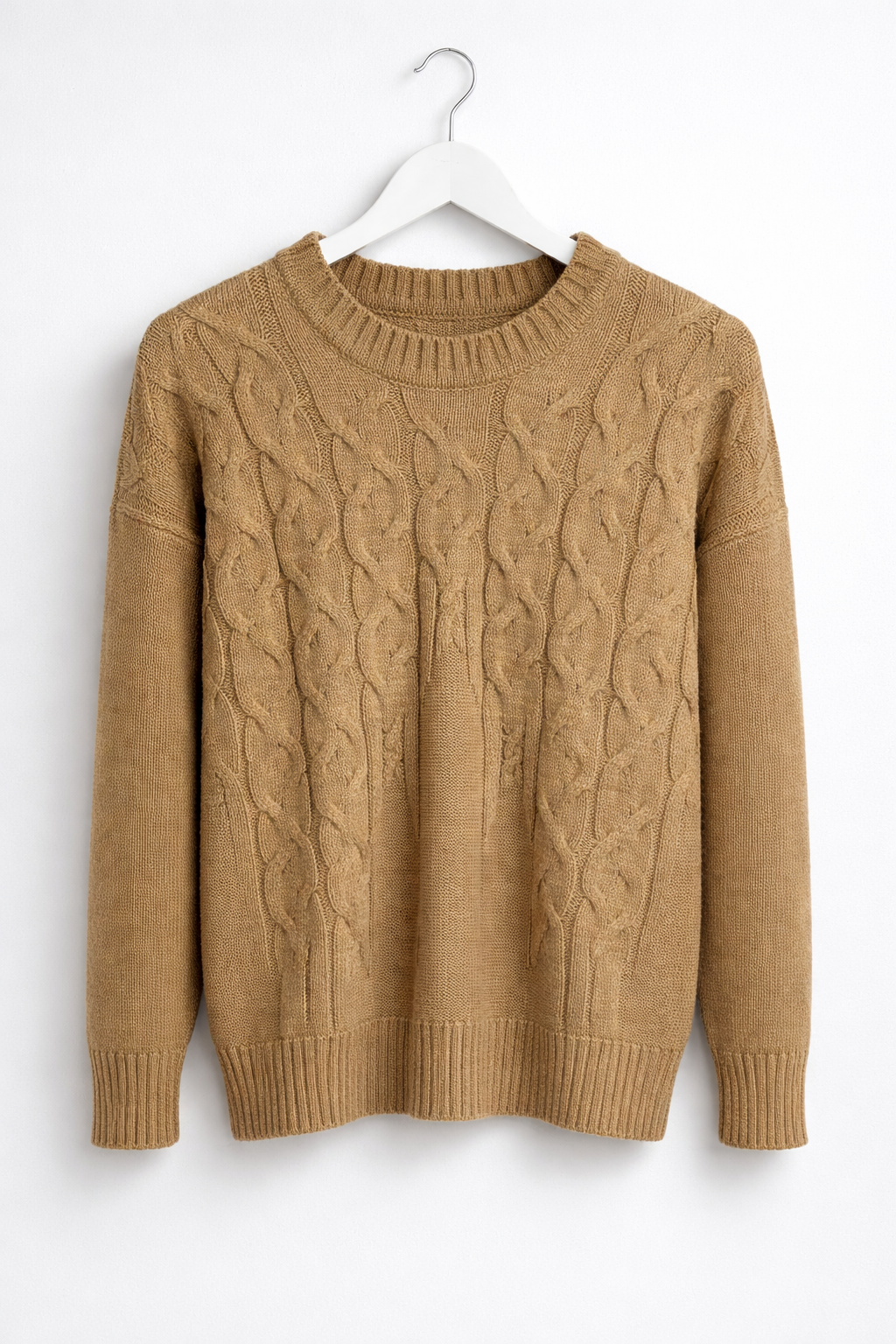 Sweater Trenzado Grueso de hilo frizado . Prenda abrigada, cómoda y muy buscada.