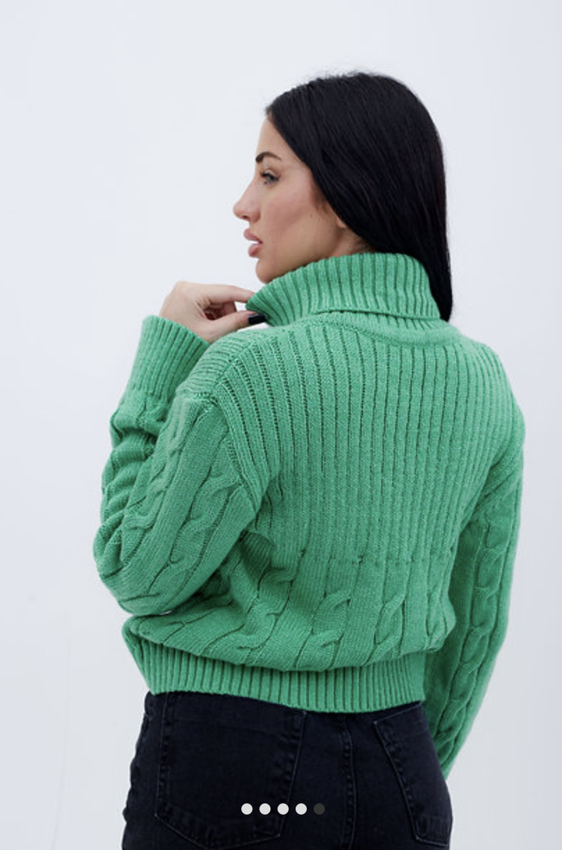 Sweater tipo polerón confecccionado en hilo acrílico.
