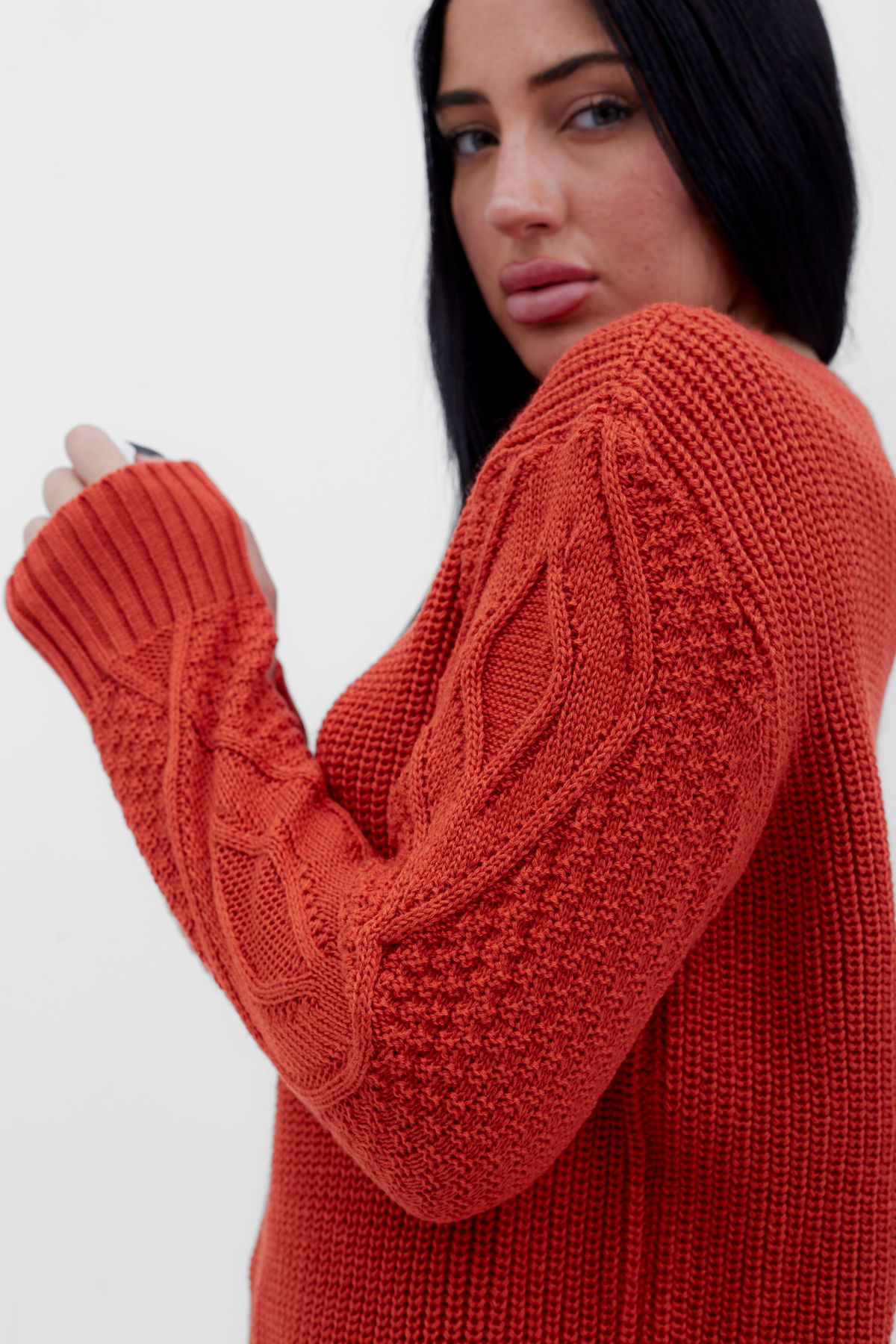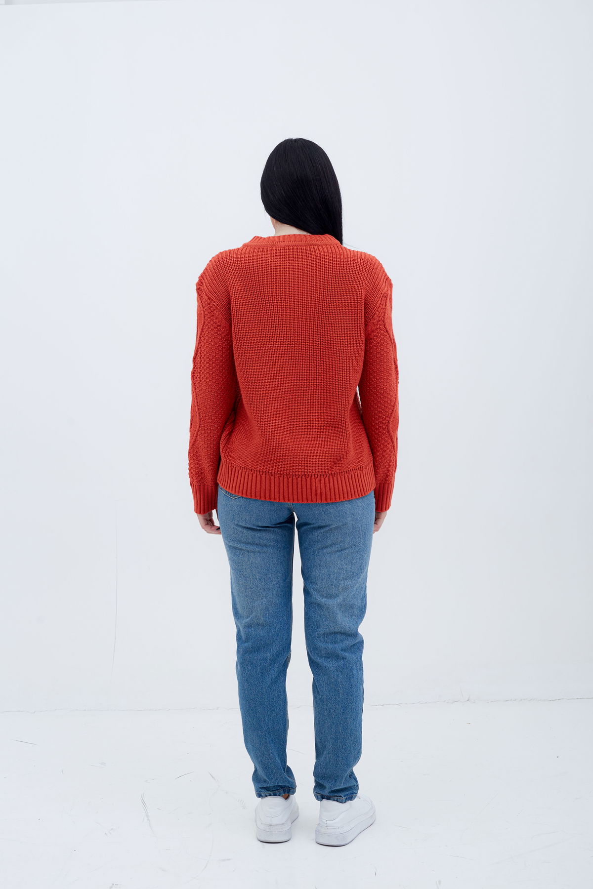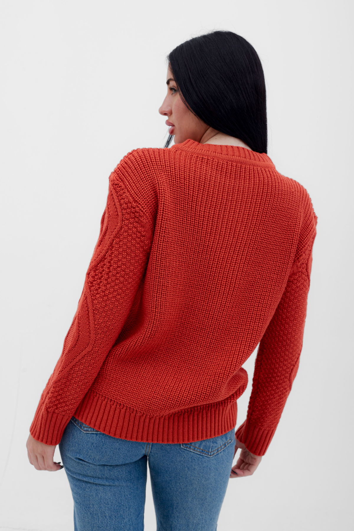 Sweater confeccionado en hilo acrilico con detalle de tramado en los brazos.