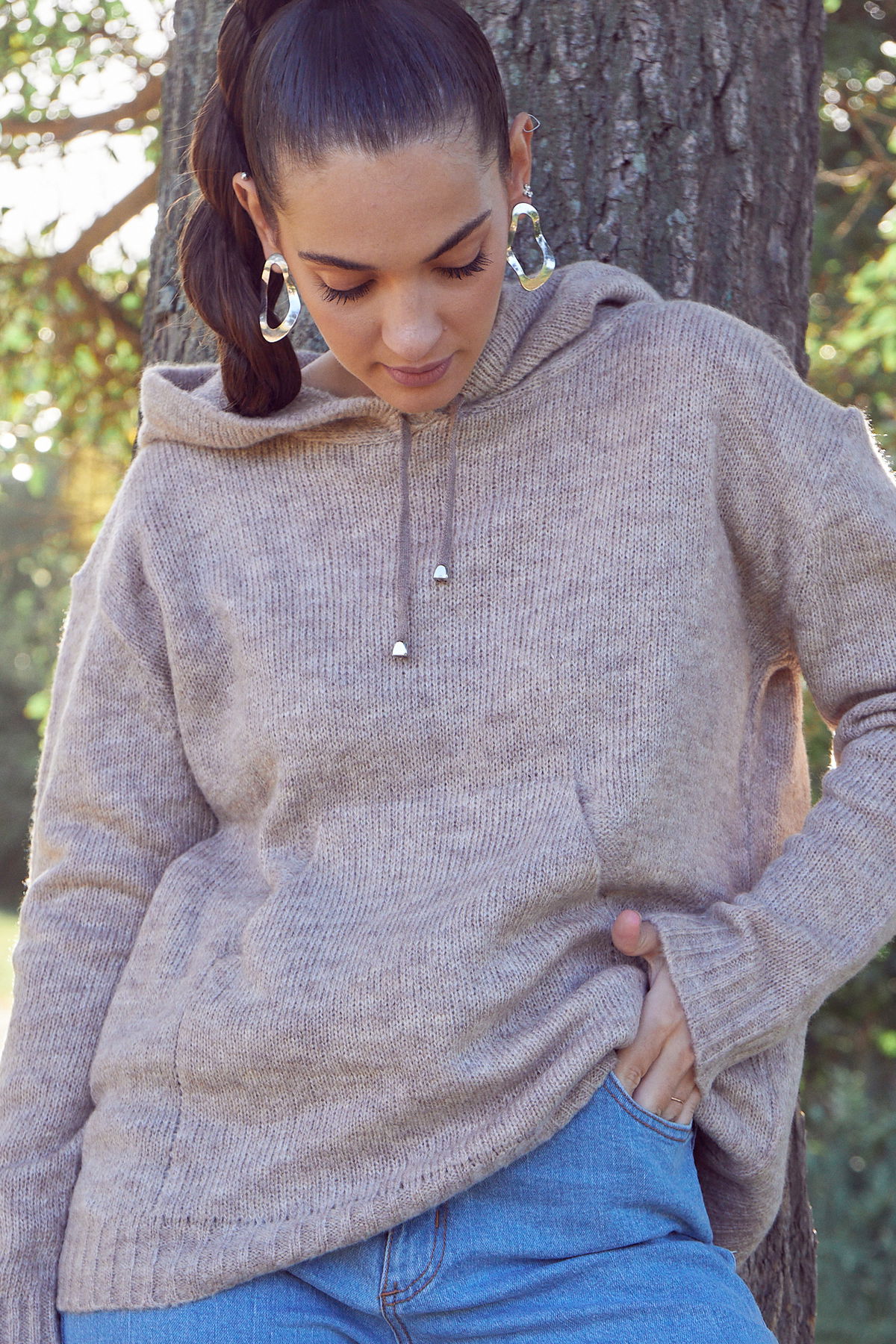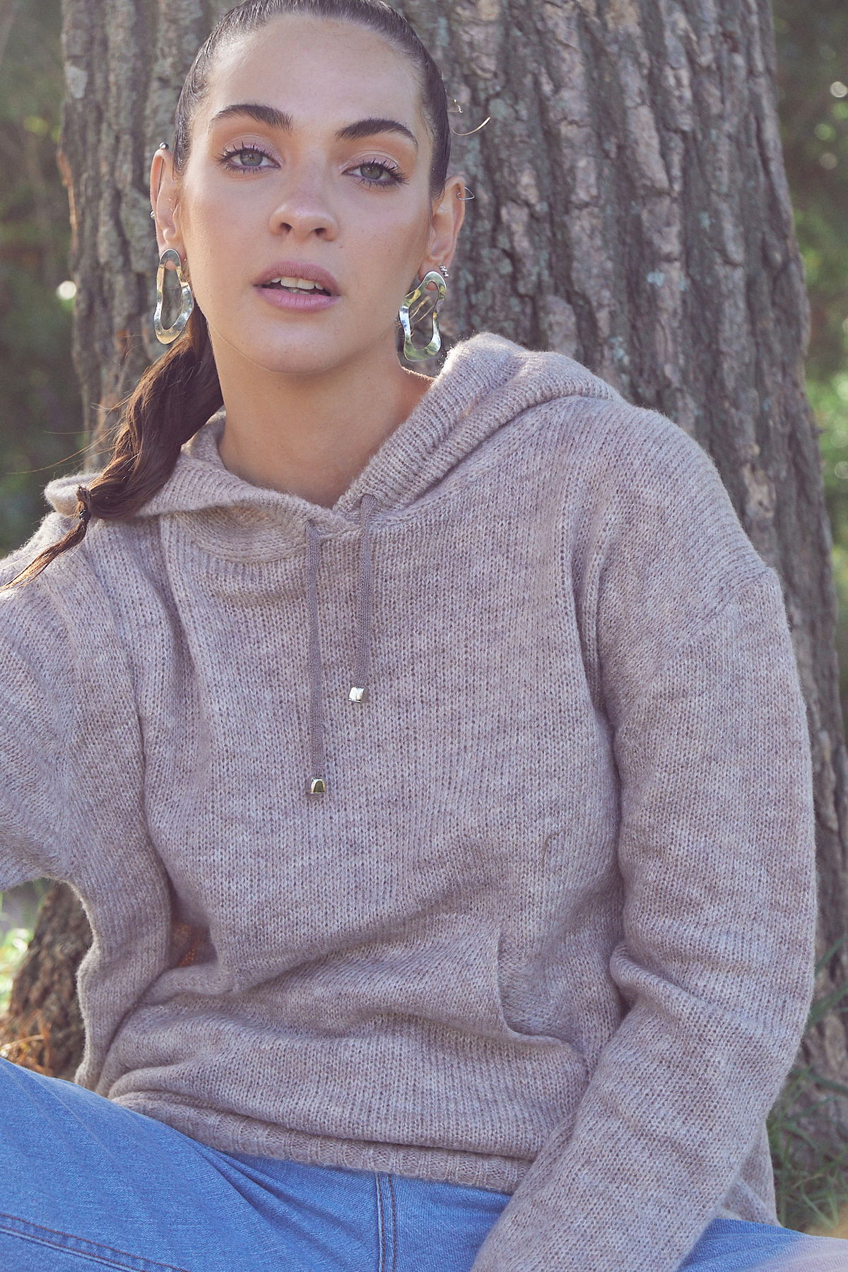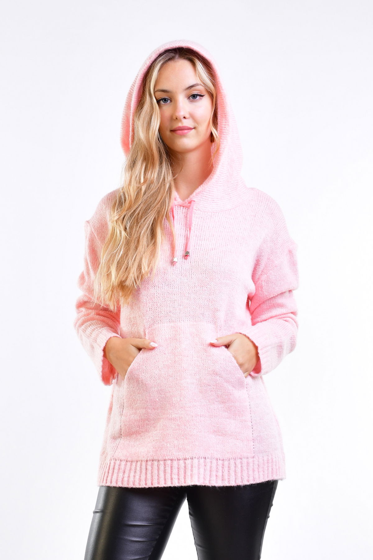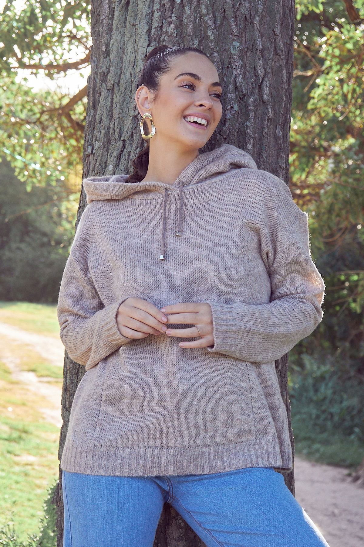 Sweater con capucha confeccionado en hilo fancy.