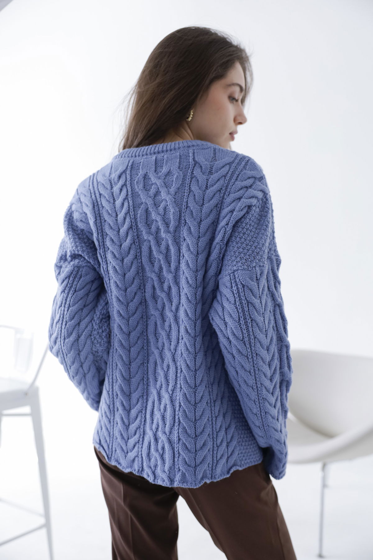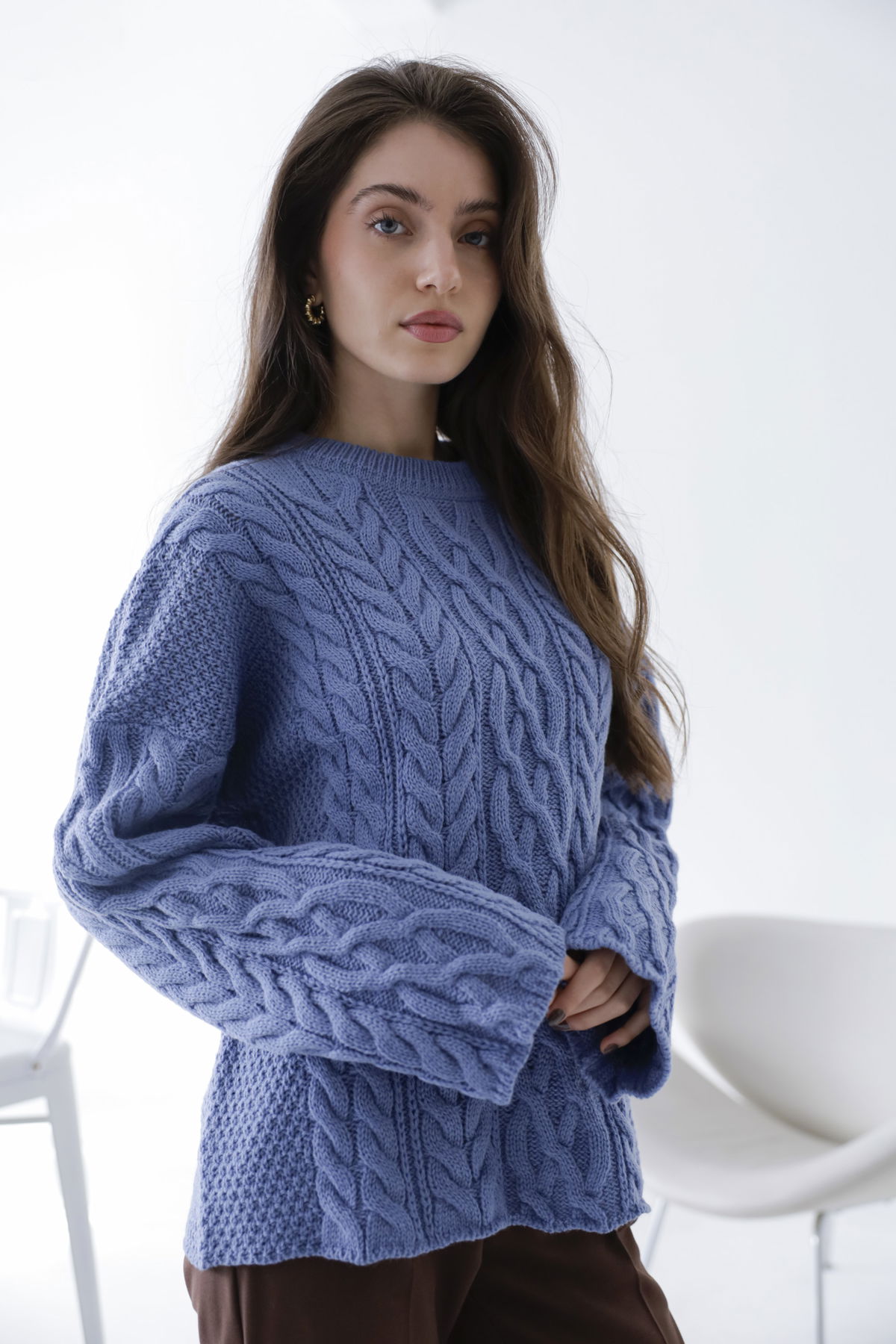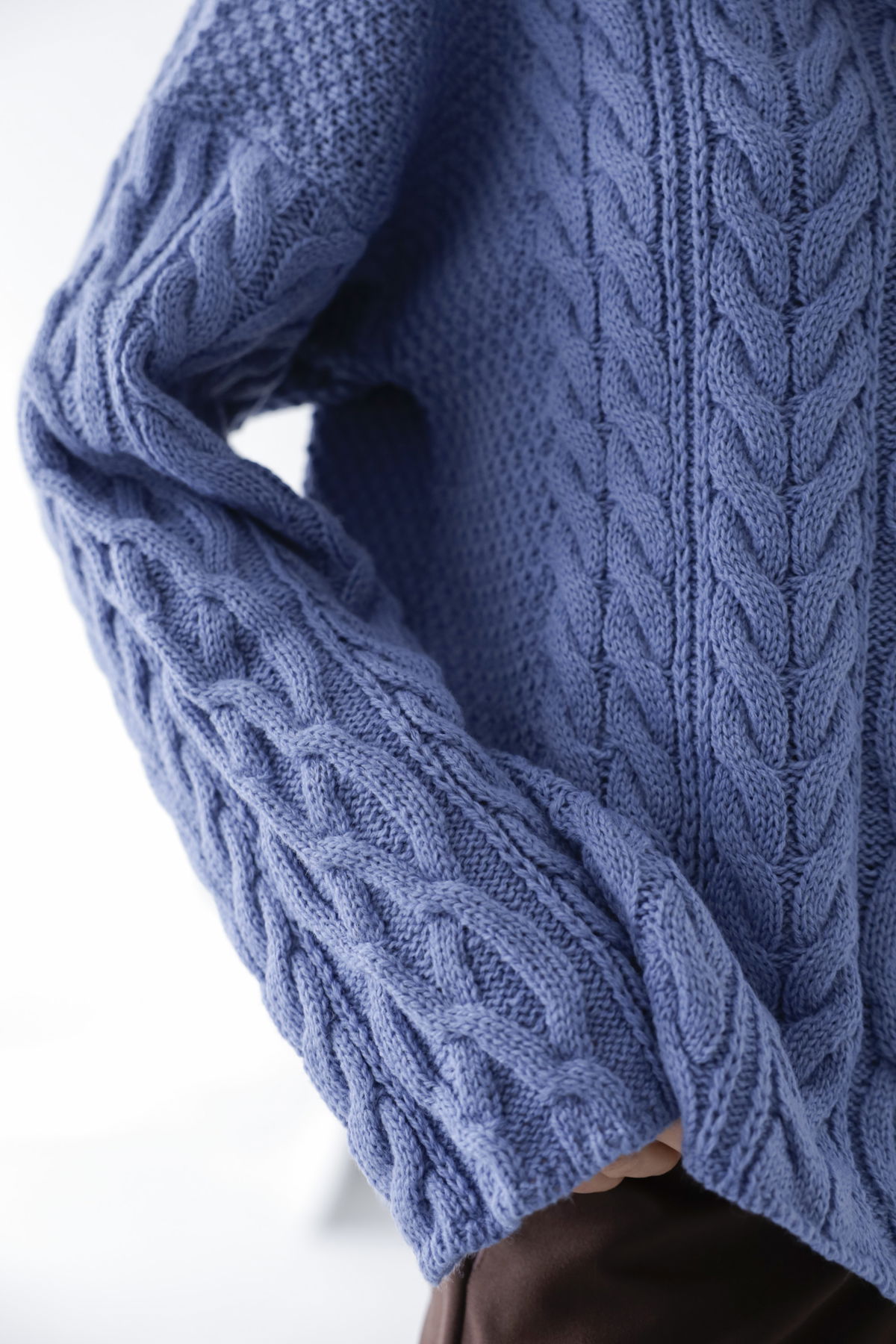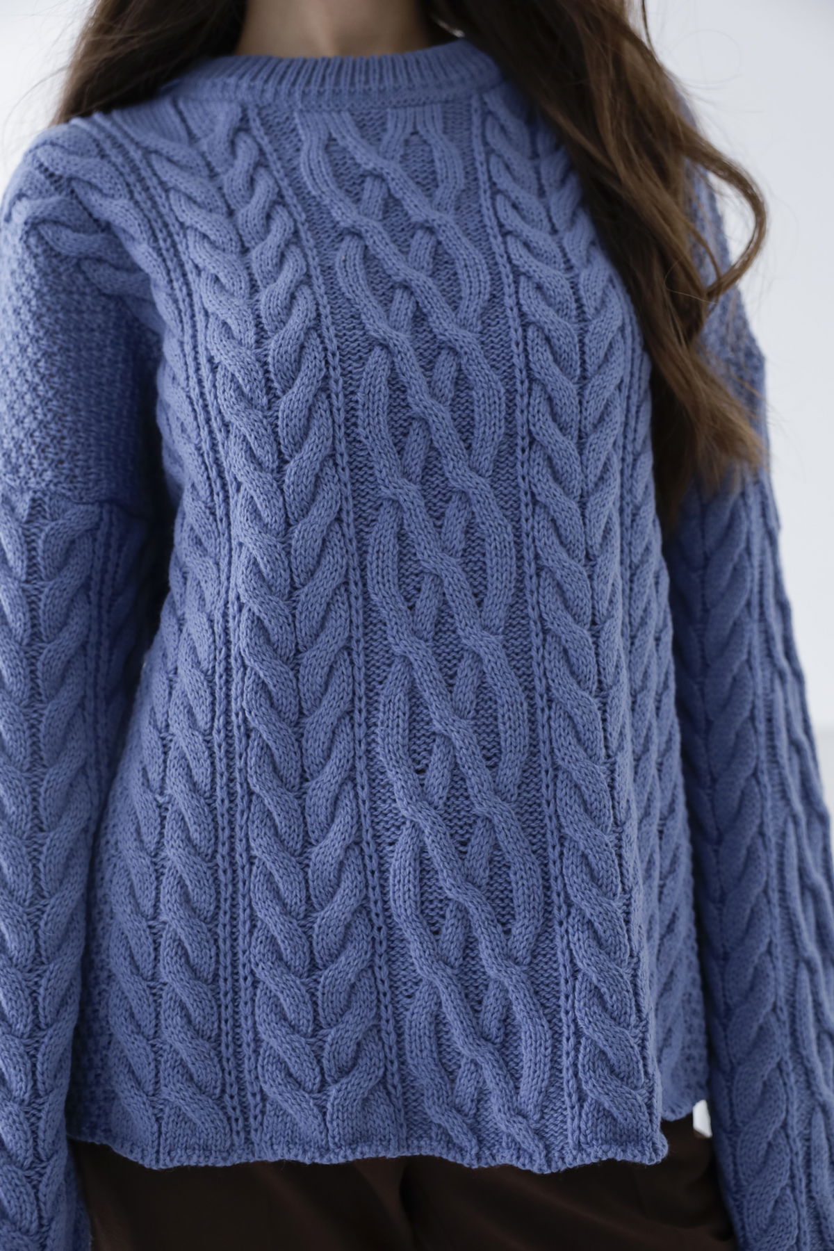 Sweater confeccionado en doble hilo bremer con detalle de trenzas