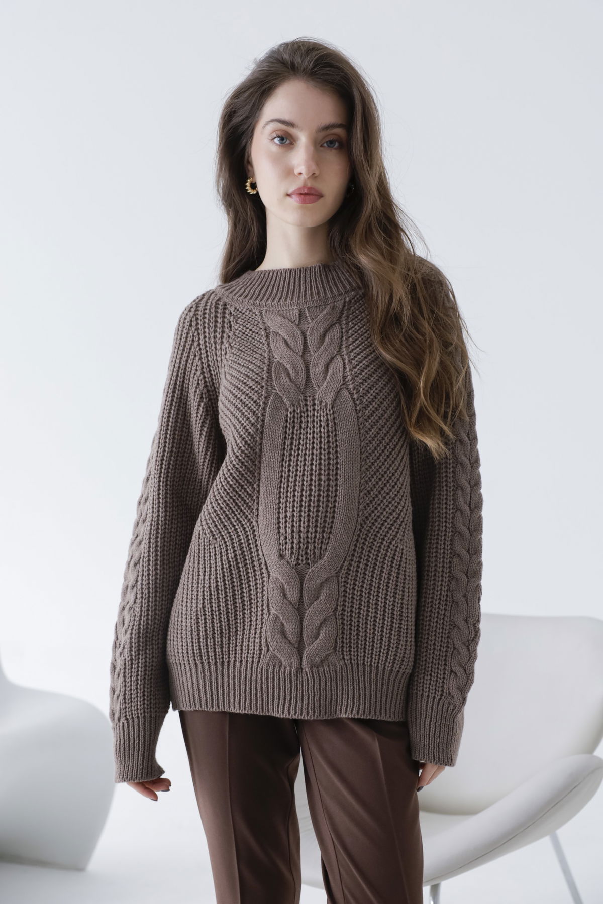 Sweater confeccionado en hilo algodón en doble tejido.