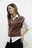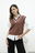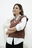 La modelo tiene puesto el chaleco en color chocolate.