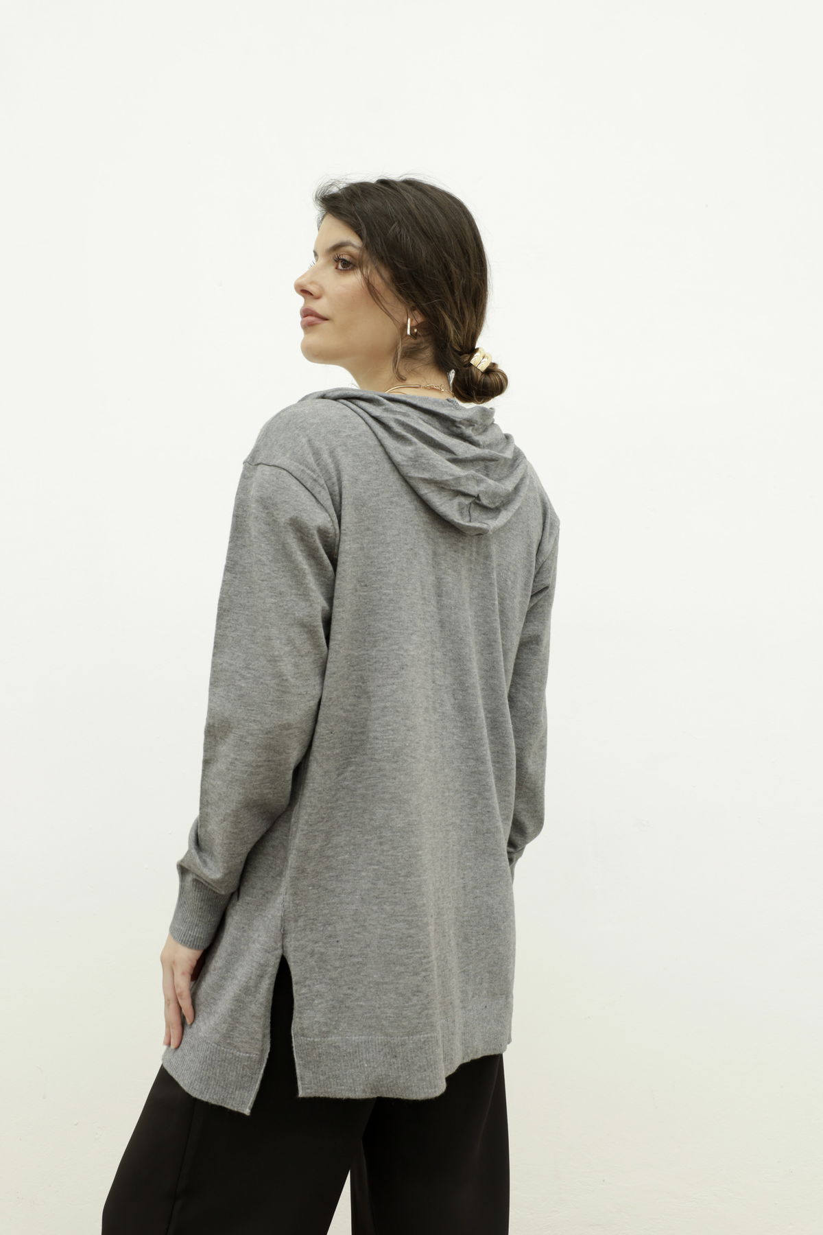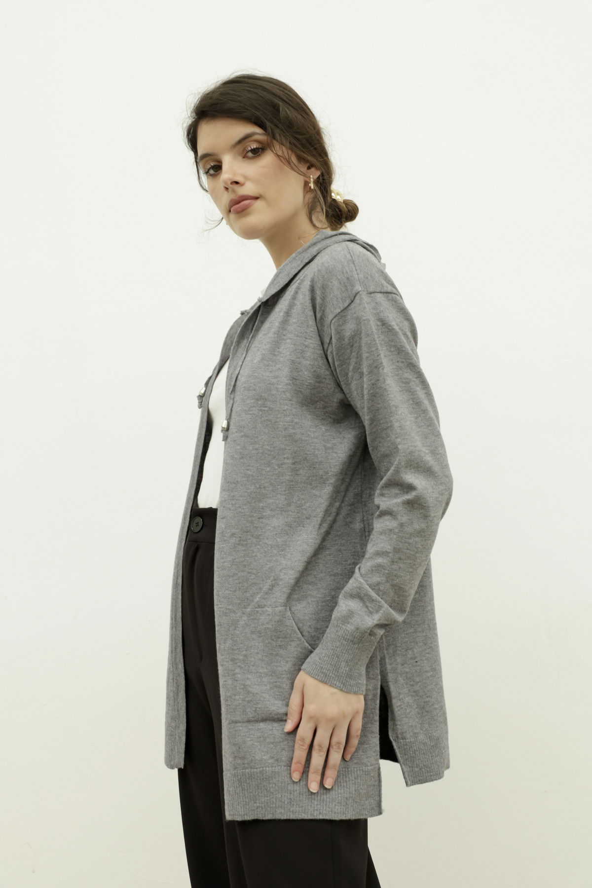 Saco con capucha confeccionado en hilo bremer.
