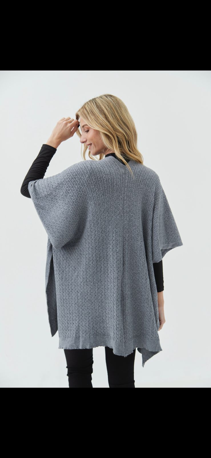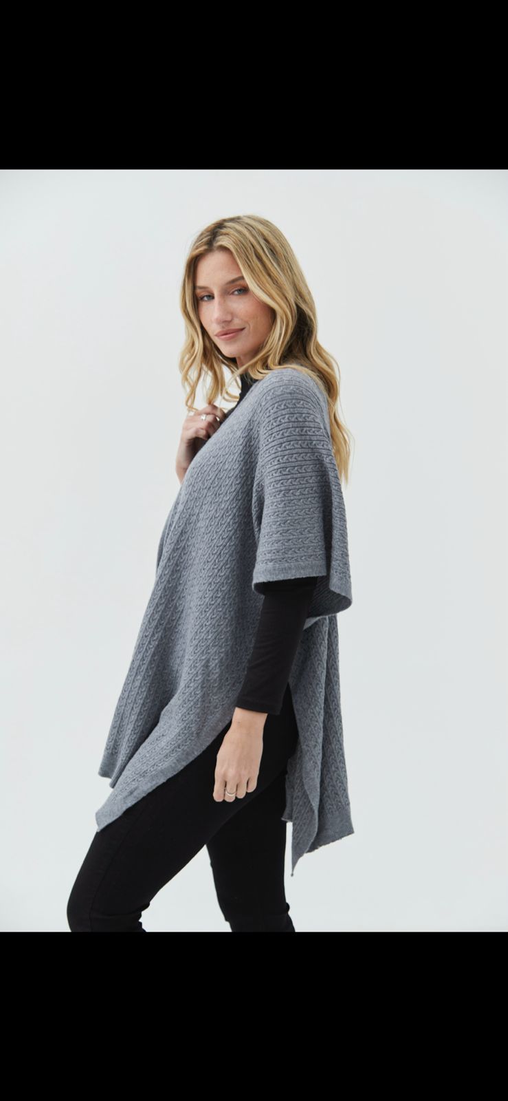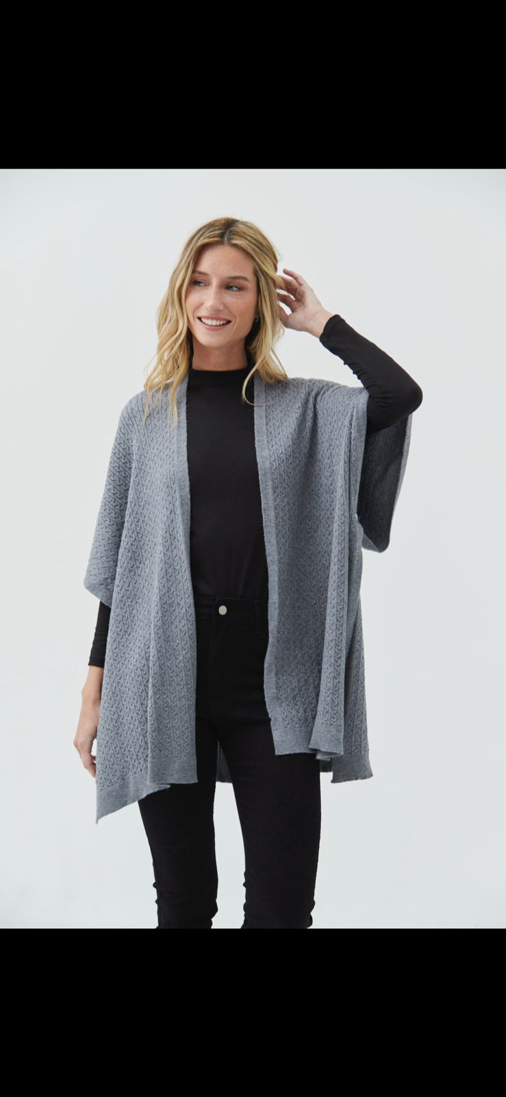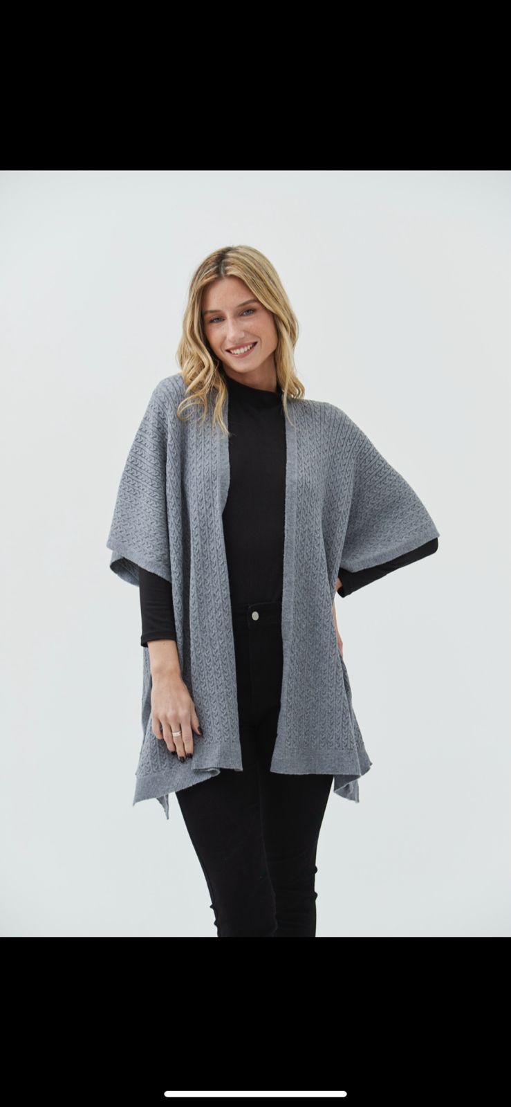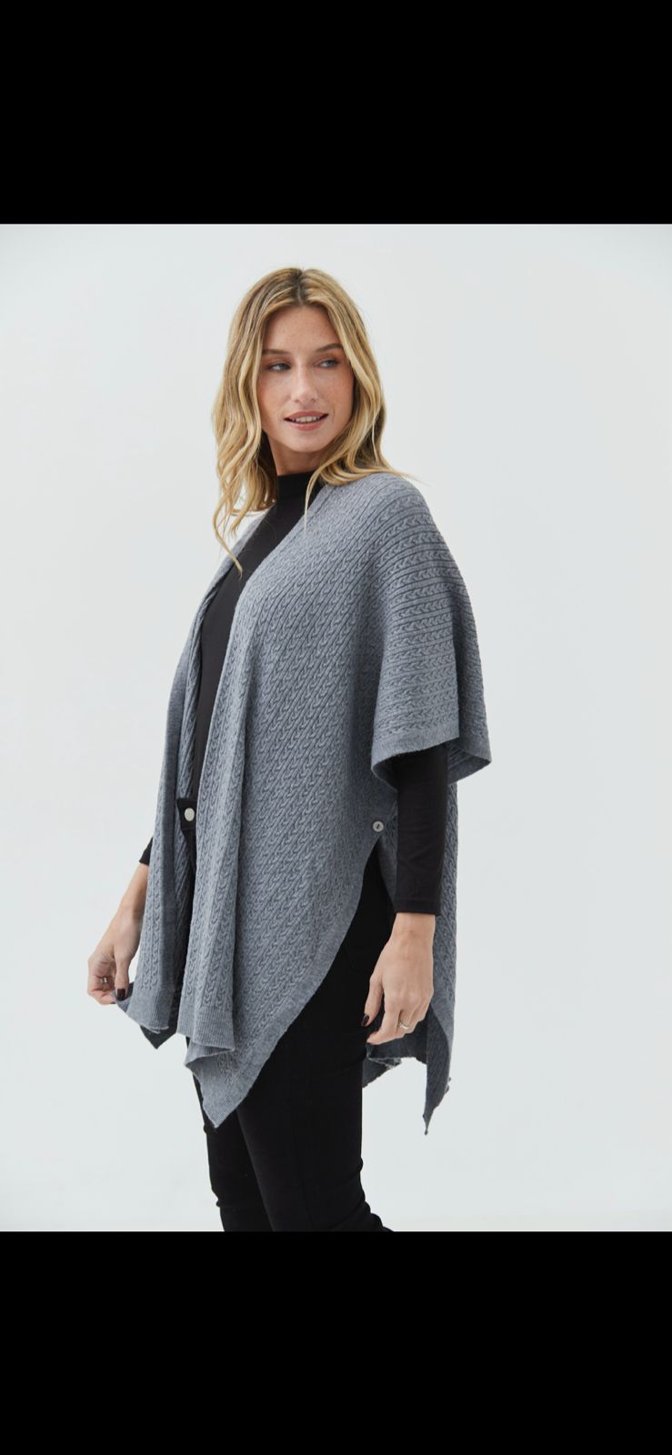 Poncho tipo capa confeccionado en hilo bremer con detalle de trenzas en toda la prenda.
