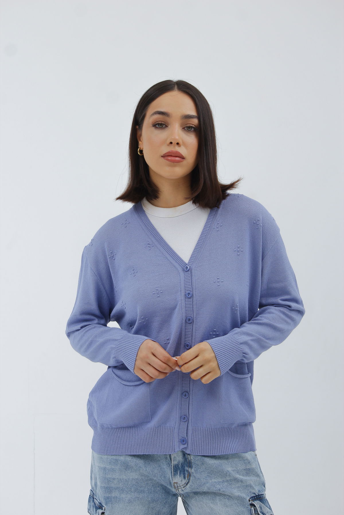 Saco de hilo lycra talle grande, fresco y liviano para los días de verano.