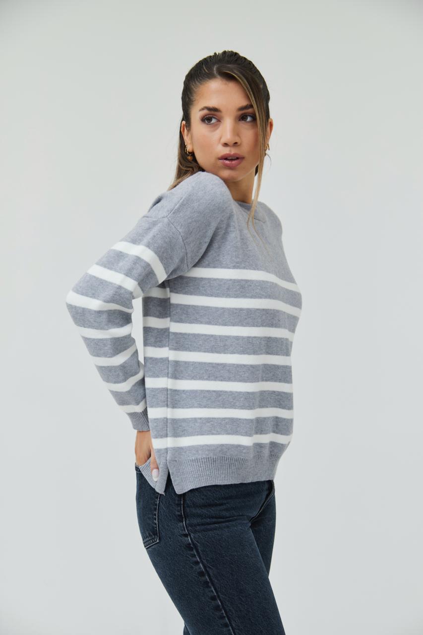 Sweater rayado confeccionado en doble hilo bremer.