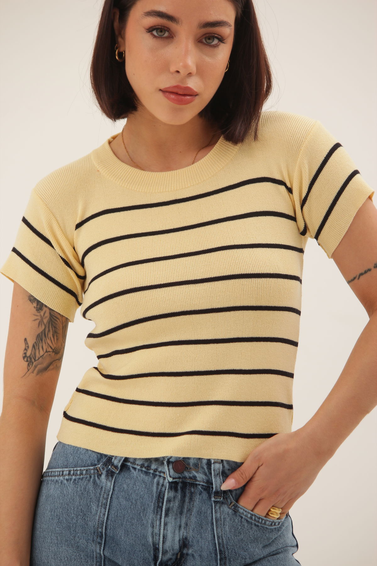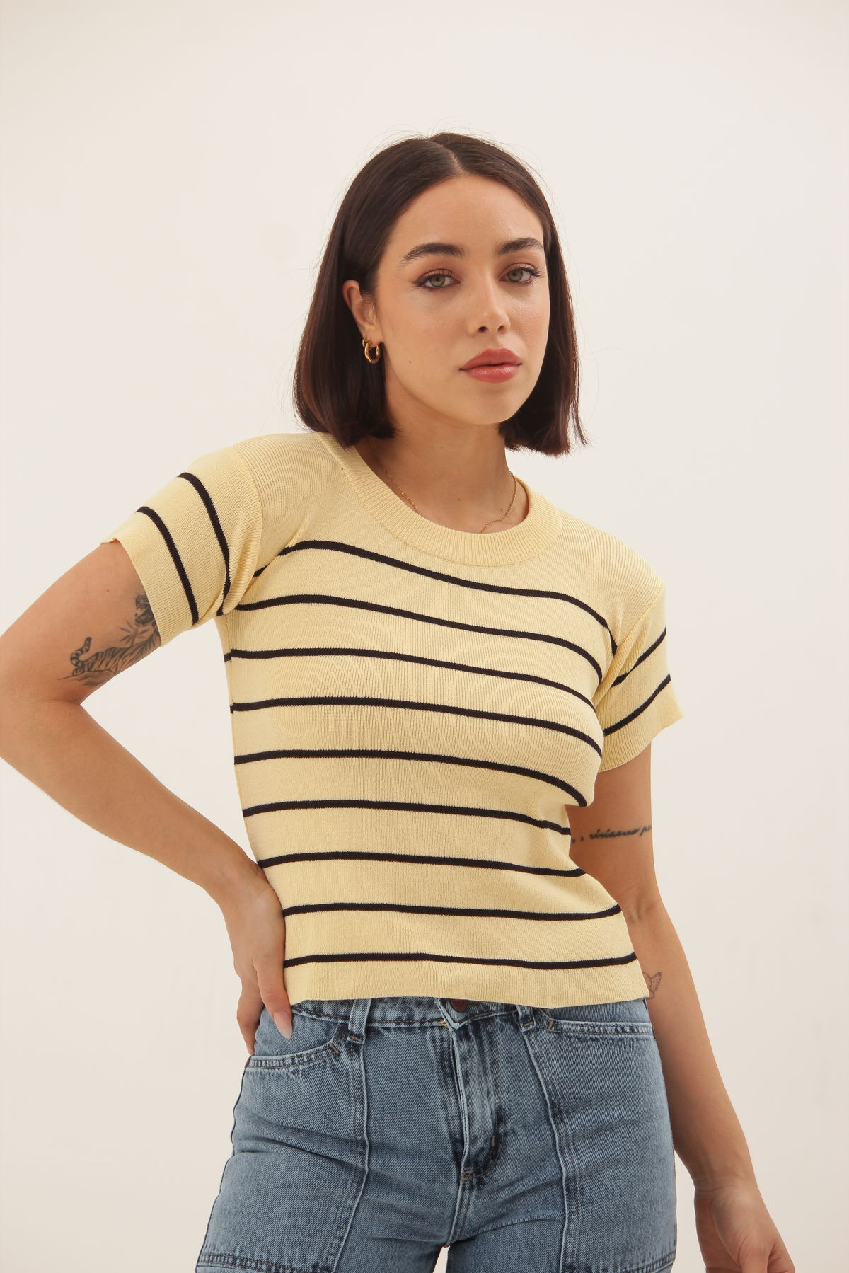 Remera rayada confeccionada en hilo lycra
