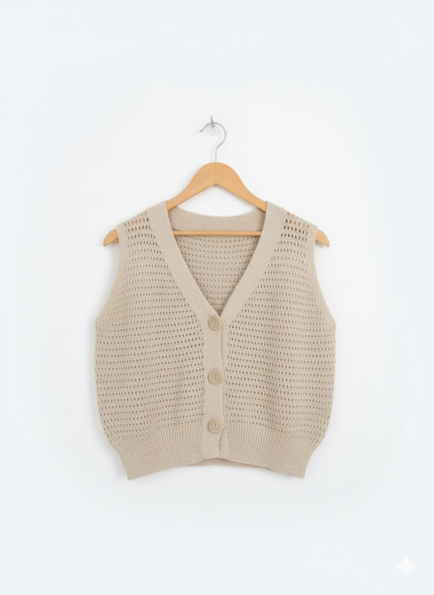 Chaleco tejido en hilo de algodon.