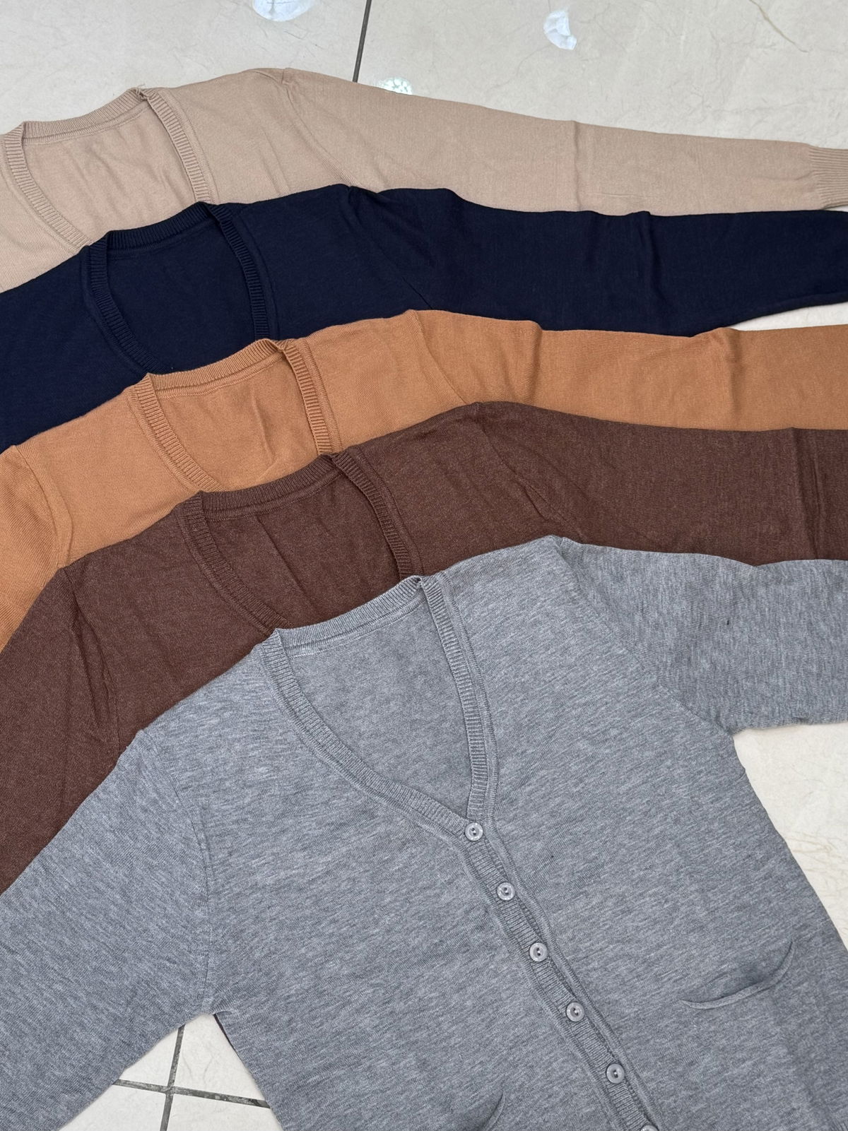 Saco básico de hilo bremer con bolsillos escote V. Prenda casual, cómoda y muy buscada.