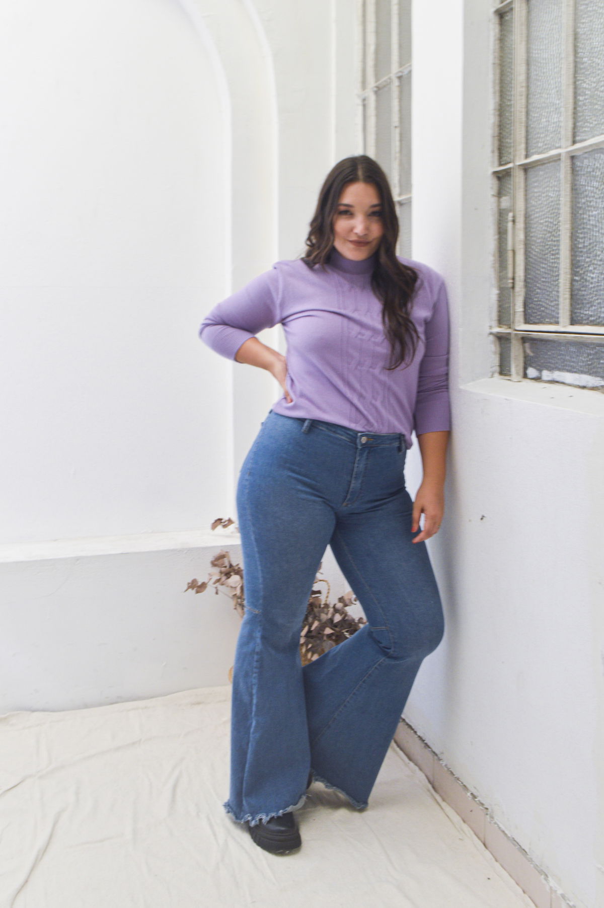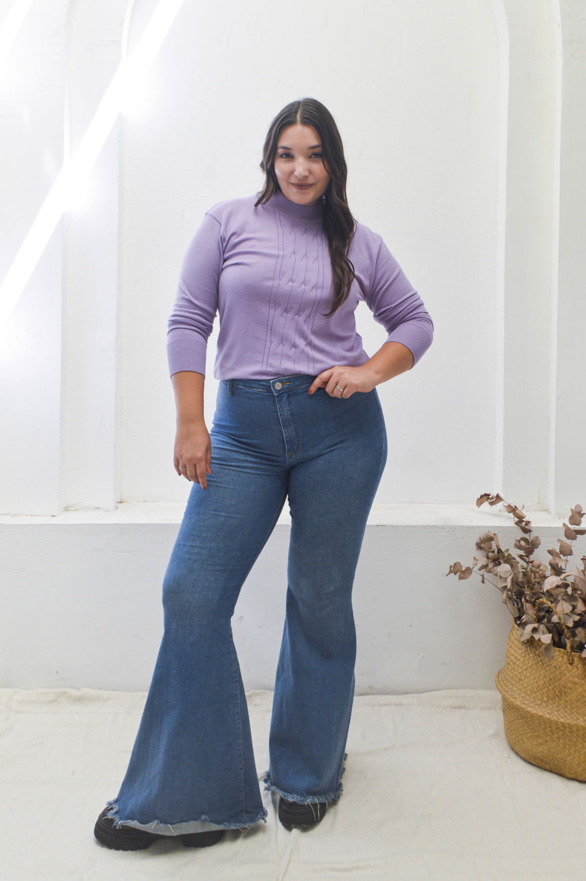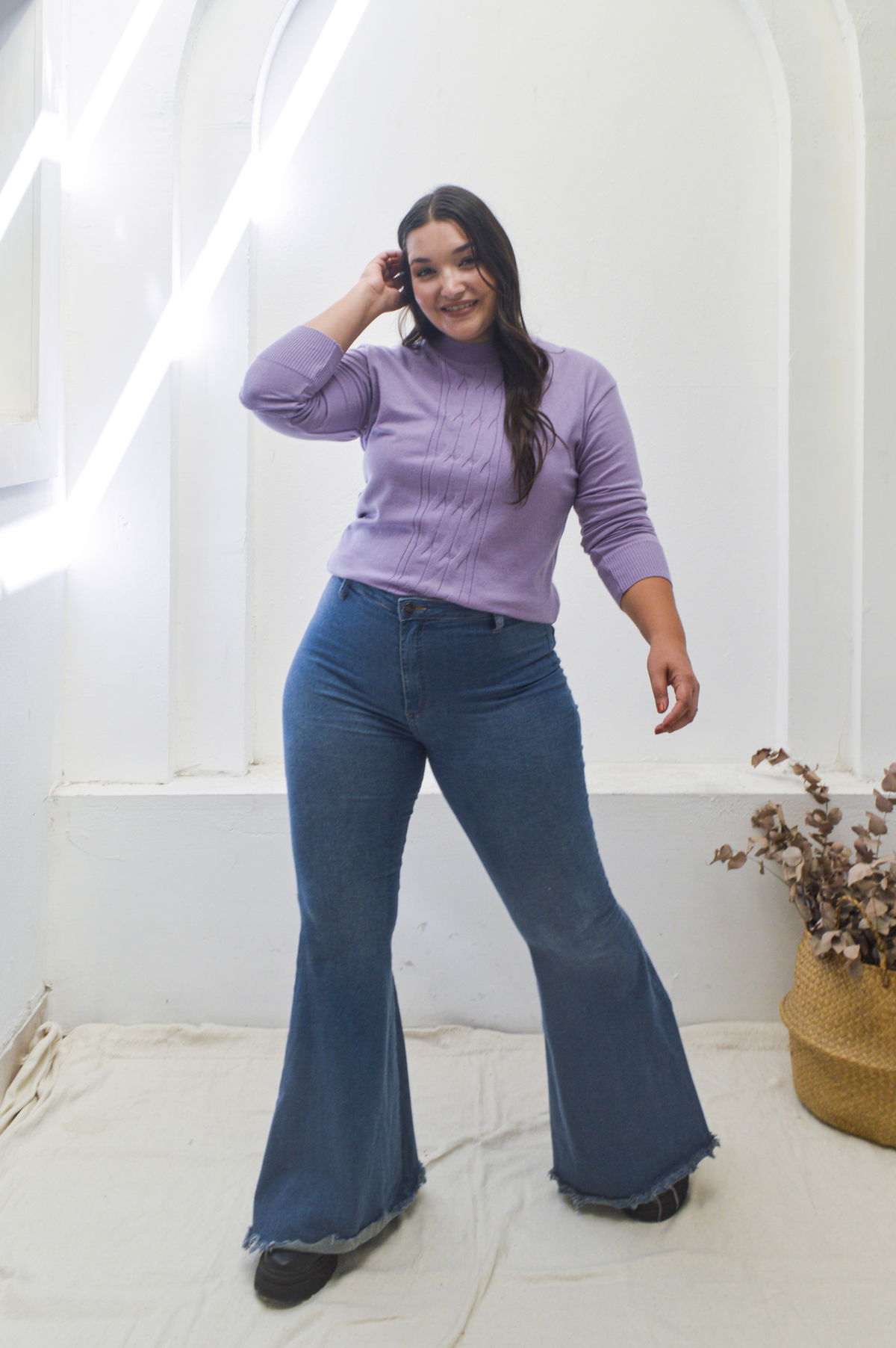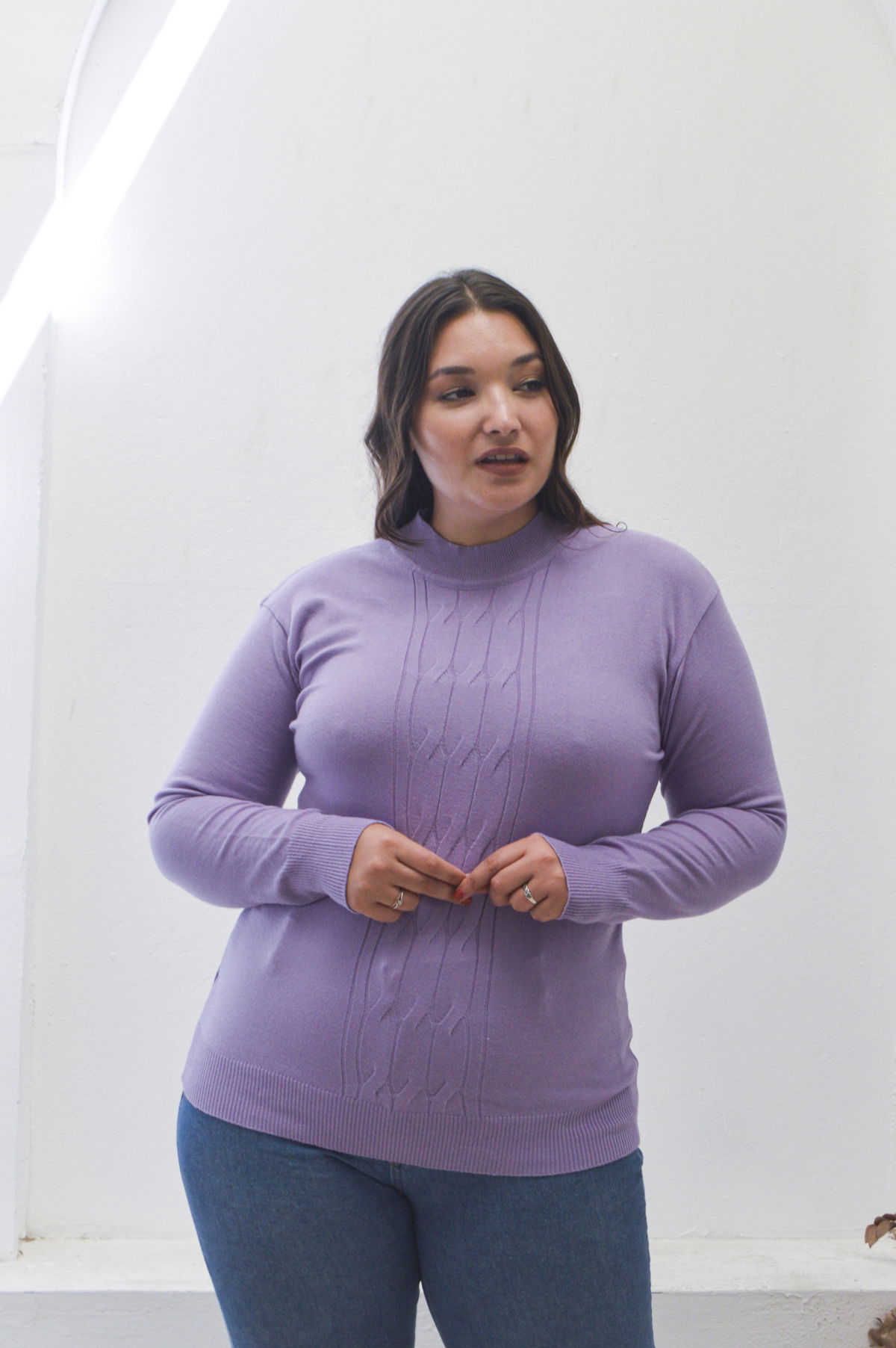 Sweater talle grande confeccionado en hilo bremer con detalle de trenzas al medio