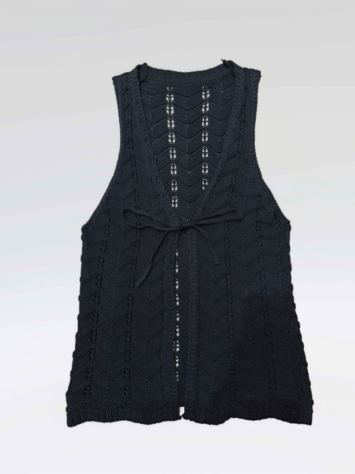 Chaleco de algodón caladoen espigas con textura súper suave. Prenda liviana, cómoda y muy buscada.